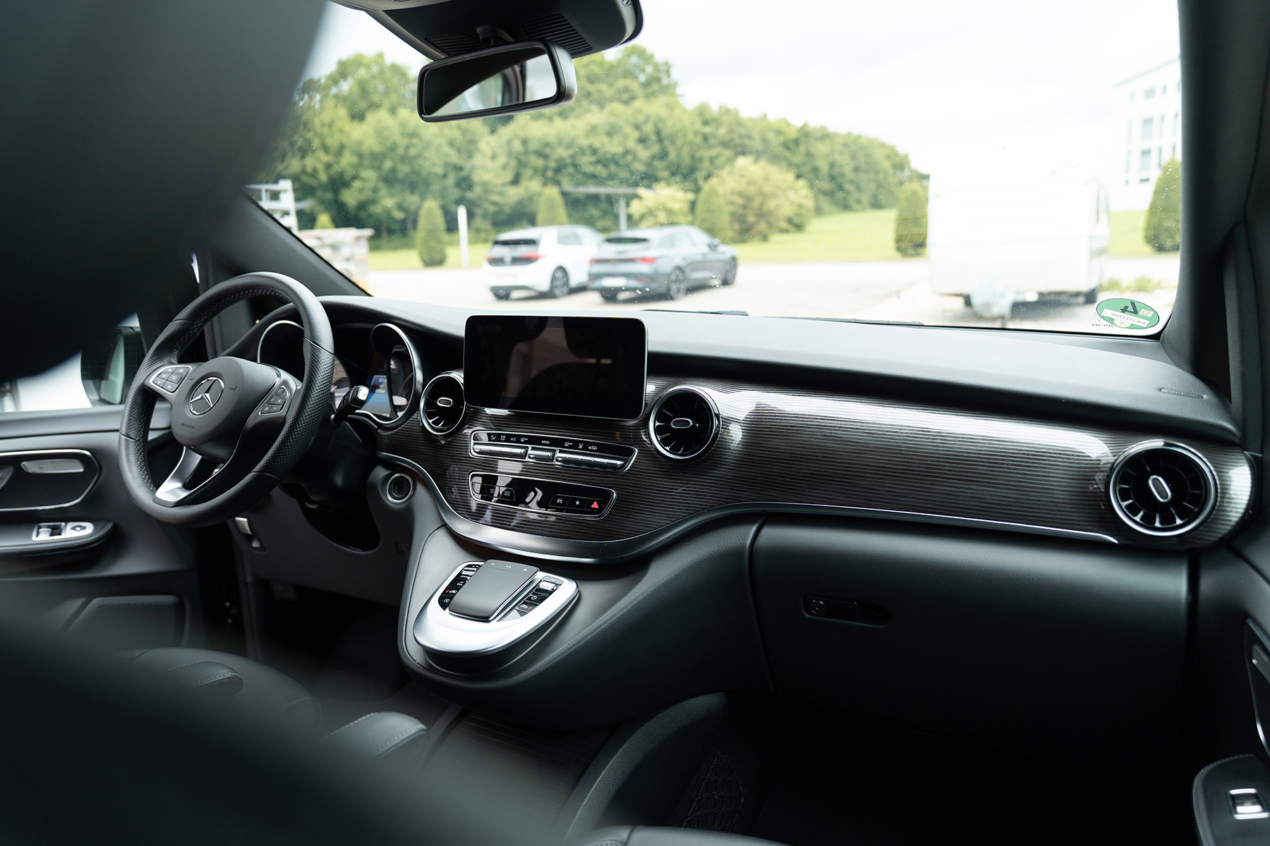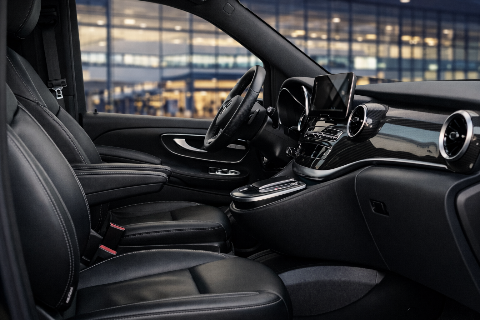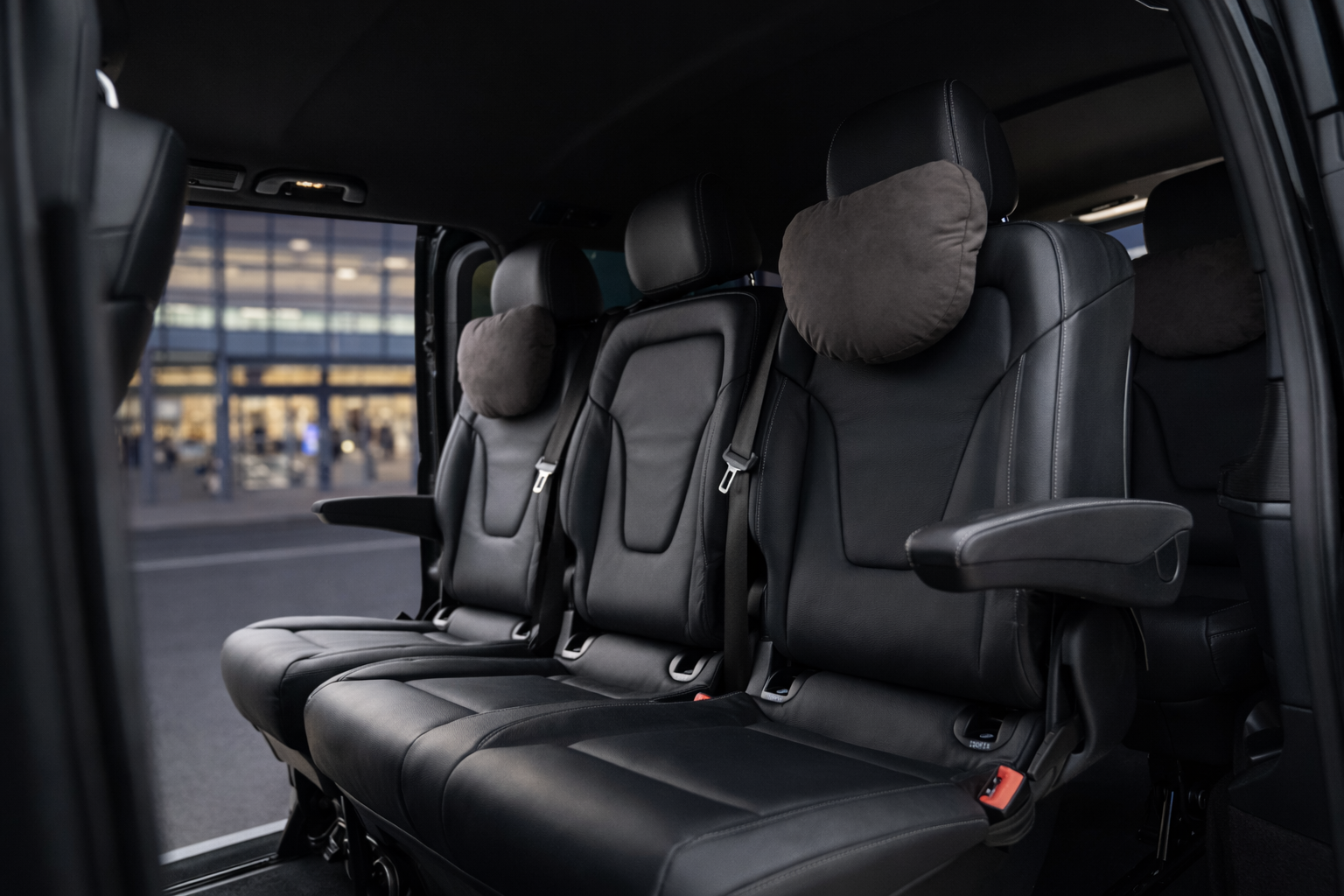 Unsere Mercedes-Benz V-Klasse bietet Platz für bis zu 7 Fahrgäste und eignet sich ideal für Gruppenfahrten, Familien oder Geschäftsteams. Mit großzügigem Innenraum, bequemen Sitzen und hochwertiger Ausstattung genießen Sie höchsten Komfort – auch auf längeren Strecken.